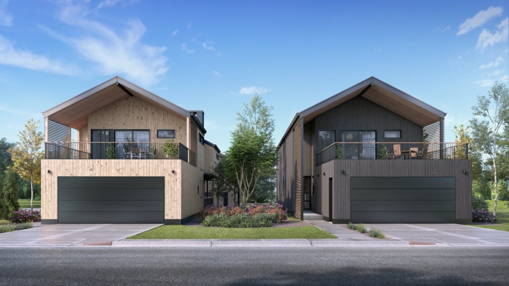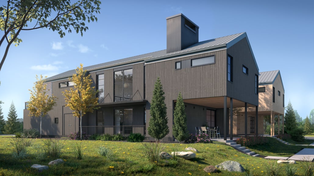 Modern exterior architecture is complemented by fresh and refined interior spaces within these custom homes. The main home is comprised of an open floor plan with cathedral ceilings and two story, floor-to-ceiling glass windows in the living area. There is a chefs kitchen with professional grade appliances and a large island prefect for entertaining. Within the living room is a cozy gas fireplace to gather around on cold winter nights. Off the living room is a covered patio ideal for outdoor dining and enjoying the surroundings. Directly adjacent to the oversized, heated two car garage is a powder-room, laundry-room and mud-room, optimal for gear storage and organization.